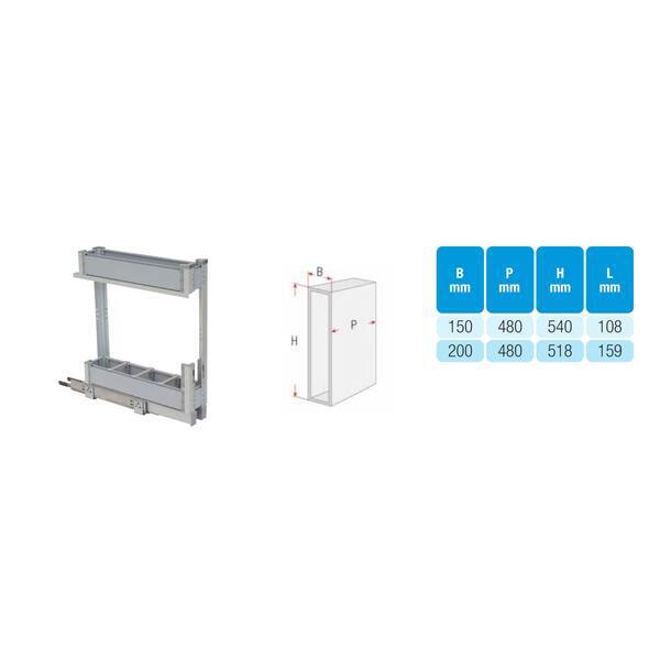 CESTELLO OGGETTI M150 L108P276H540 GRIGIO FISSAGGIO BASE GUIDA AMMORTIZZATA
