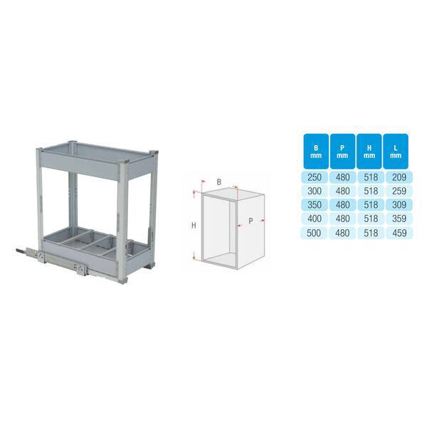 CESTELLO PORTABOTTIGLIE E ALIMENTI M300 L260P480H520 BIANCO FISSAGGIO BASE GUIDA AMMORTIZZATA