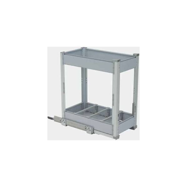 CESTELLO PORTABOTTIGLIE E ALIMENTI M300 L300P480H518 2 PIANI GRIGIO FISSAGGIO LATERALE GUIDA AMMORTIZZATA