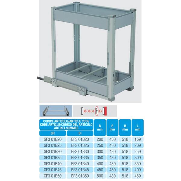 CESTELLO PORTABOTTIGLIE E ALIMENTI M450 L410P480H520 2 PIANI GRIGIO FISSAGGIO BASE GUIDA AMMORTIZZATA