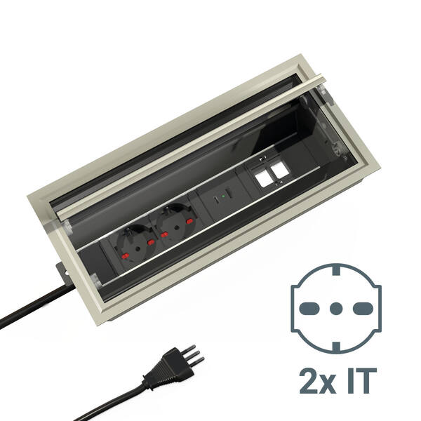 EXIT 90 PLUS PASSACAVO CON DOPPIA APERTURA E MULTIPRESA INTEGRATA DIMENSIONE 288X135X109MM FINITURA ALLUMINIO