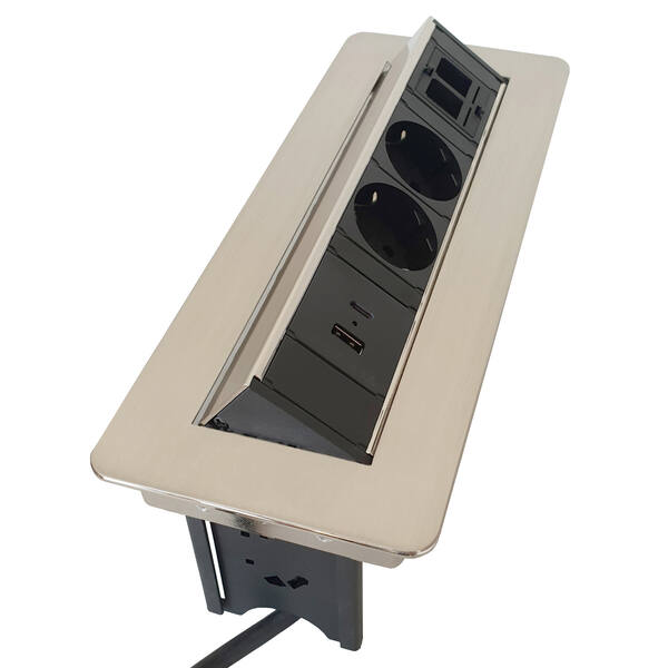 EXIT TIP MULTIPRESAESA A SCOMPARSA CON APERTURA "PUSH TO OPEN" CONFIGURAZIONE 1 USB/A, 1 USB/C, 2 PRESE , 2 SPAZI KEYSTONE)