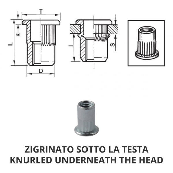 INSERTO ACCIAIO GODRONATO FILETTO FEMMINA M6 A GRIP