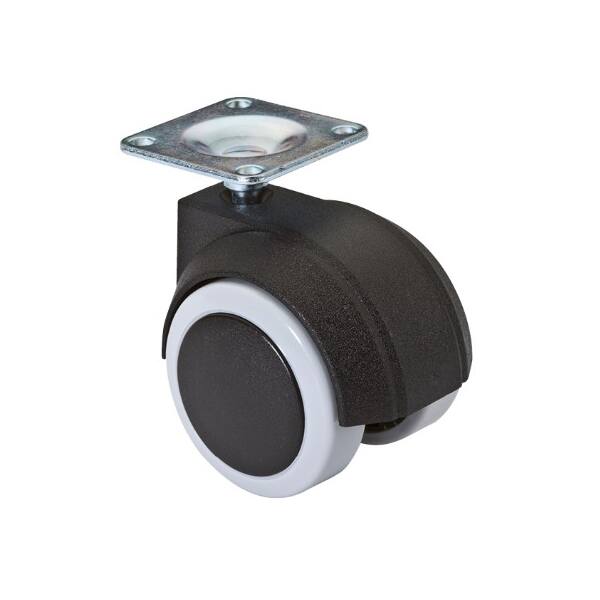 RUOTA D50 DUPLO PIASTRA MM42X42NERA CON GOMMA GRIGIA