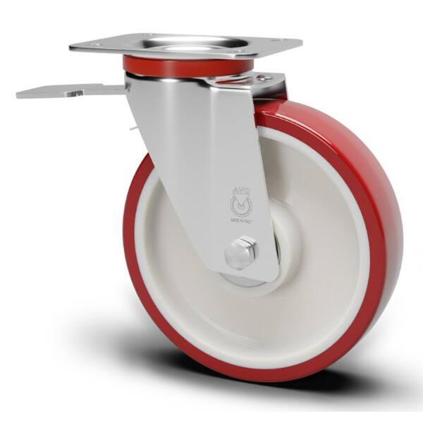 RUOTA DIAM.100MM AVO CON PARAFILI CON FRENO CON PIASTRA 31KG120 06491