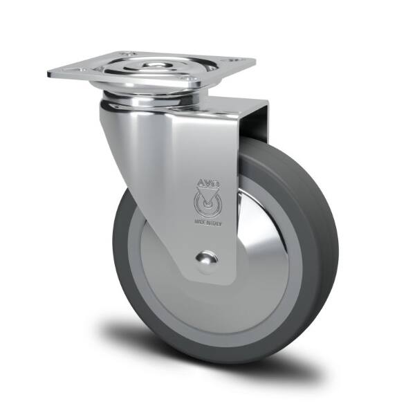 RUOTA DIAM.40MM AVO CON PARAFILI SENZA FRENO CON PIASTRA R/GOMMA 13444SC220C R/GRIGIOIG+CR