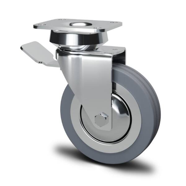 RUOTA DIAM.80MM AVO CON PARAFILI CON FRENO CON PIASTRA H115 GRIGIO-CROMO KG70 SC155BIS