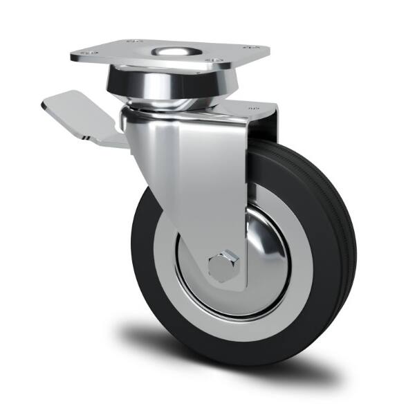RUOTA DIAM.80MM AVO CON PARAFILI CON FRENO CON PIASTRA H115 NERO-CROMO KG70 SC155BIS